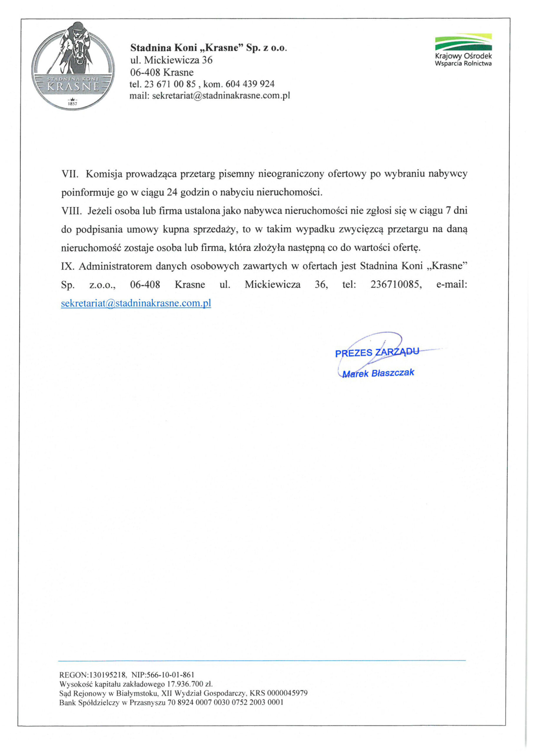 STADNINA KONI KRASNE SP. Z O.O.