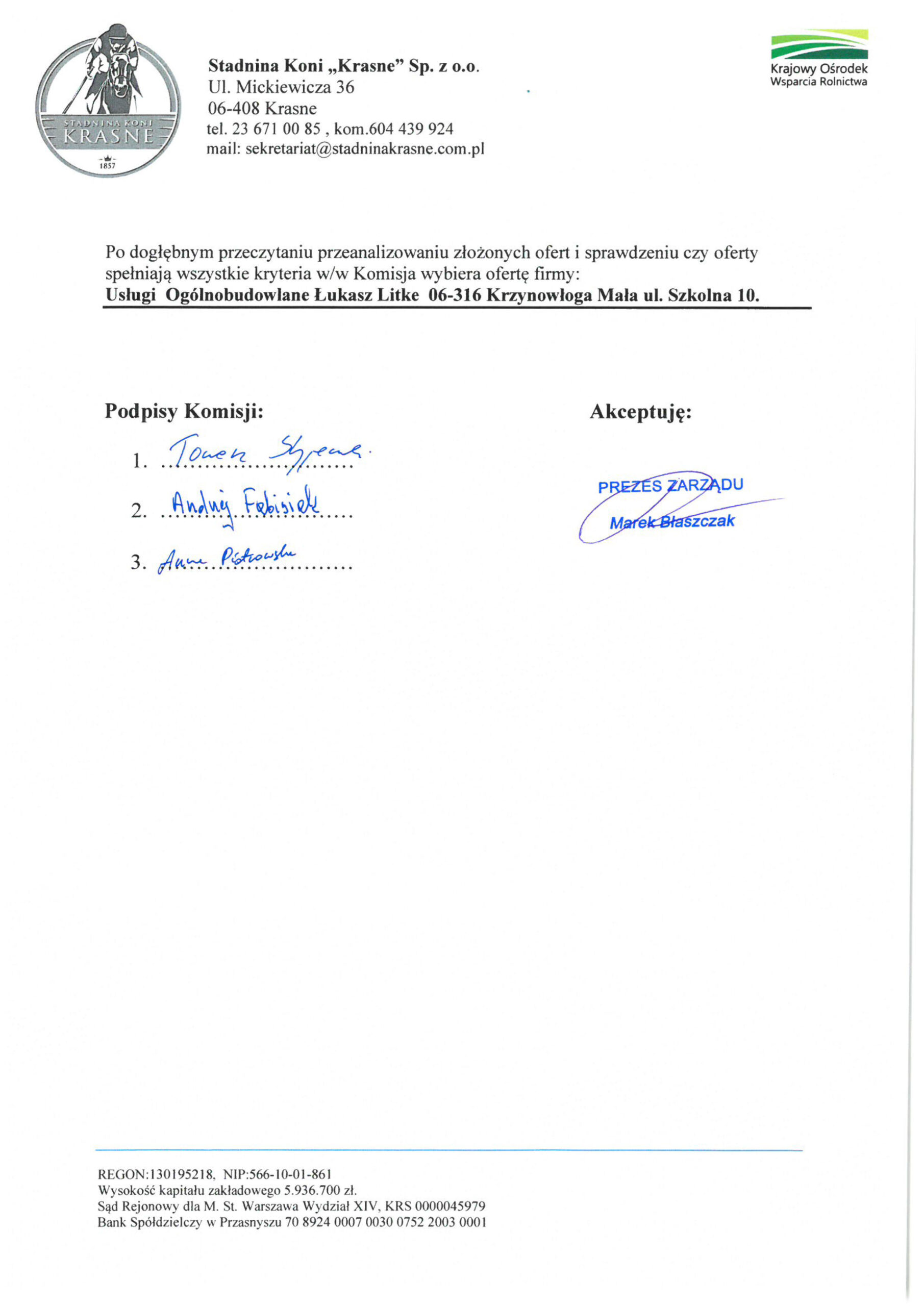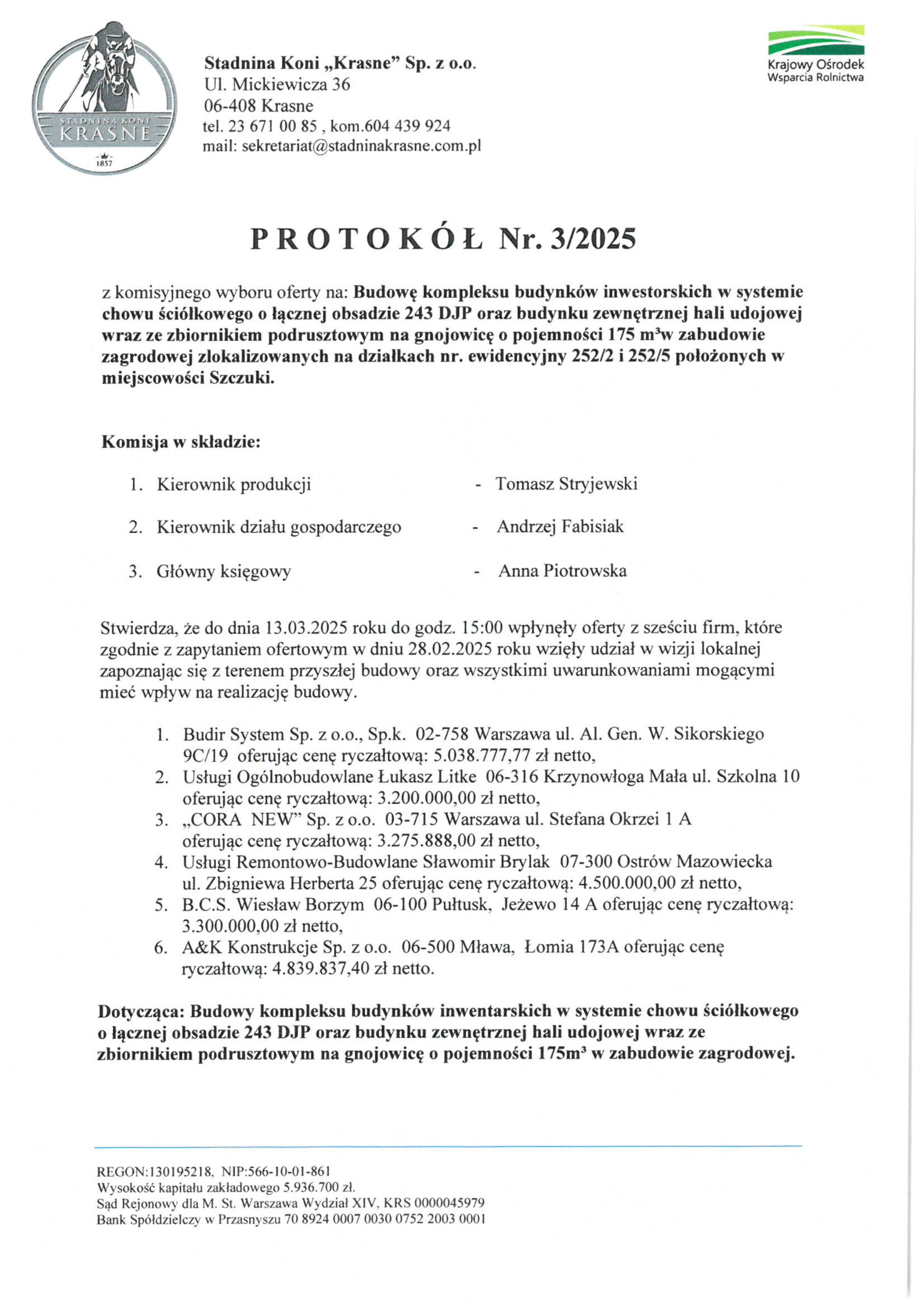 Zapytania ofertowe Protokół z komisyjnego wyboru oferty na budowę kompleksu budynków inwestorskich by Nawigacja wpisu PoprzedniInformacja z komisyjnego otwarcia ofert na budowę kompleksu budynków inwestorskichNastępnyOferta pracy – Instruktor Jazdy Konnej