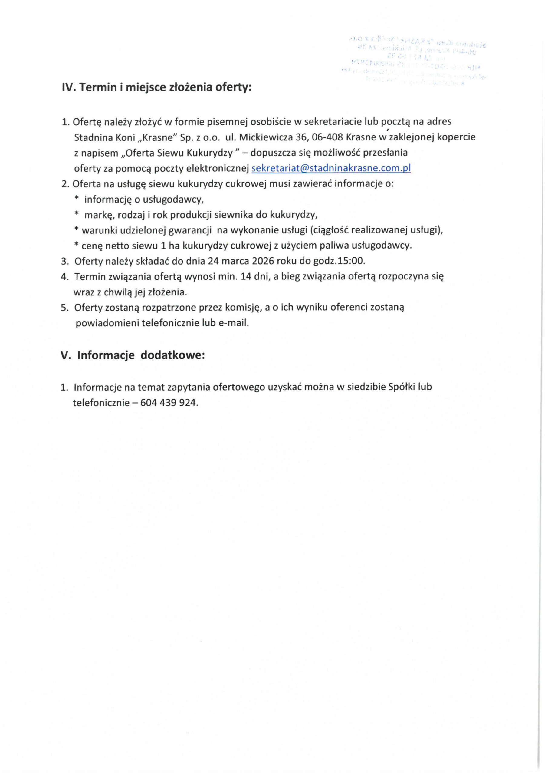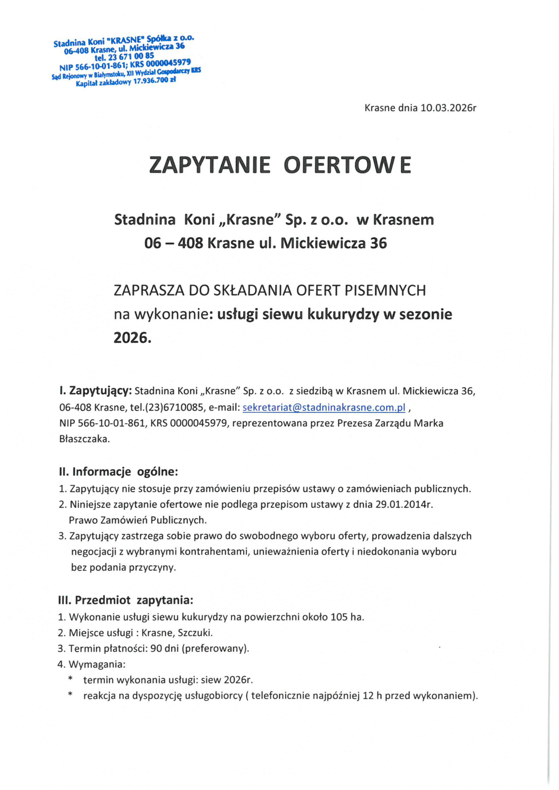 Zapytania ofertowe Zapytanie ofertowe na usługi siewu kukurydzy w sezonie 2026 by Nawigacja wpisu PoprzedniZapytanie ofertowe na usługi siewu buraka cukrowego w sezonie 2026